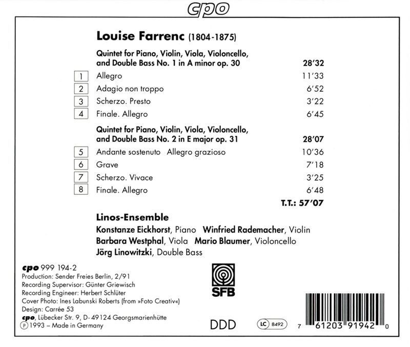 Louise Farrenc (1804-1875): Klavierquintette op.30 & op.31 - C
