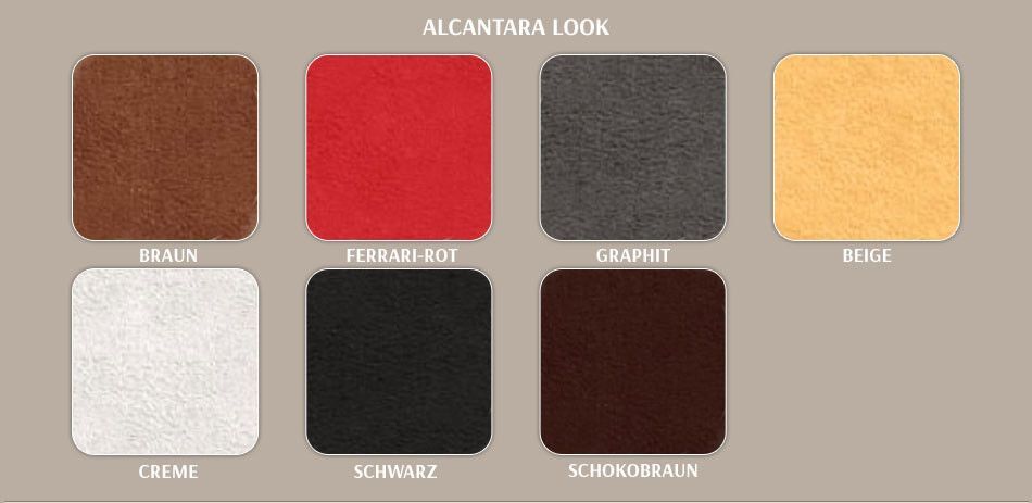 Beige, Graphite, Braun, Rot, Schwarz, Schokobraun und Creme