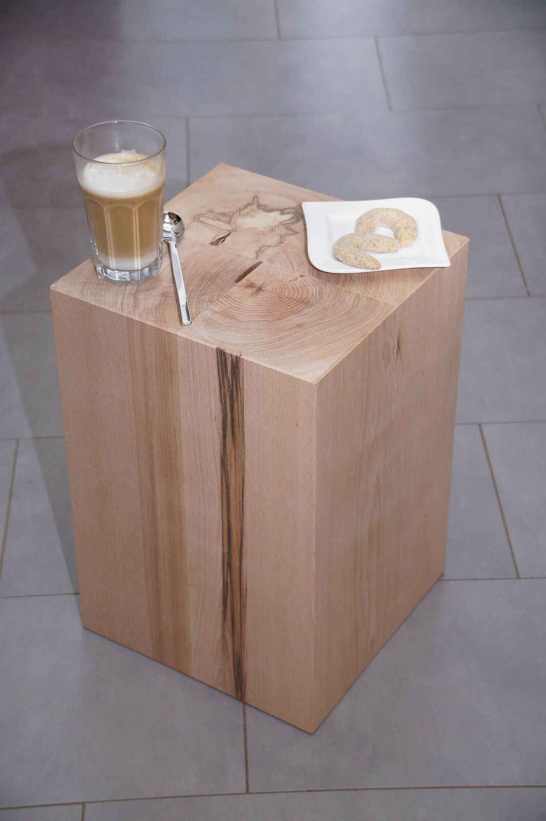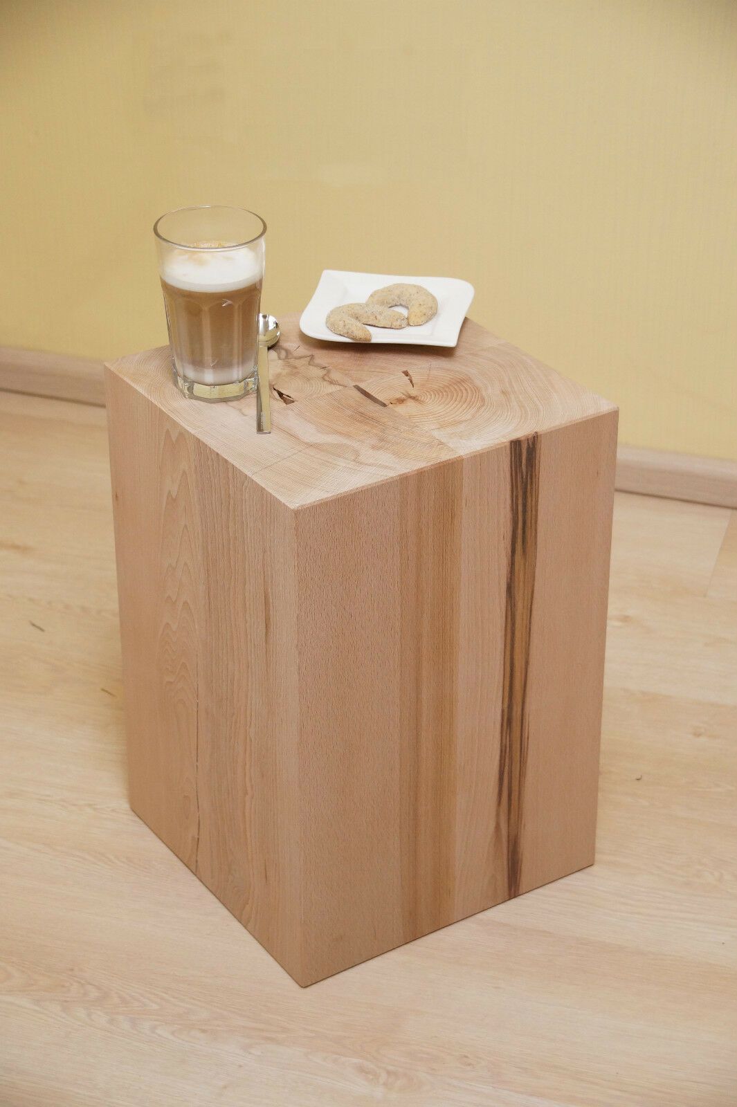 Lounge Sitzblock Klotz Würfel Cube Hocker Massivholz Sitzklotz Buche Holzklotz