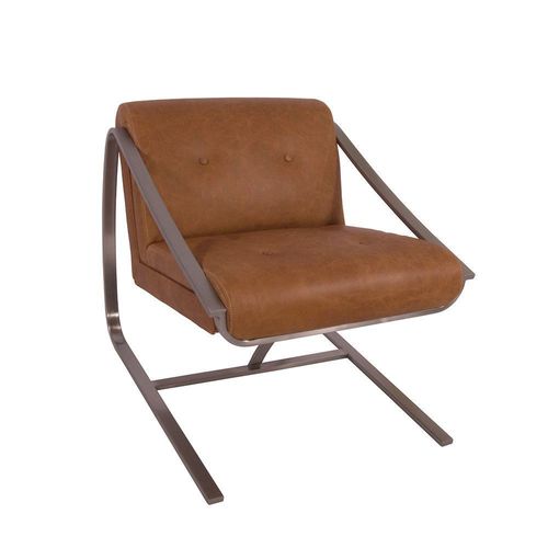 Loungesessel Aldgate Columbia Brown Edelstahl Echtleder Ledersessel Clubsessel