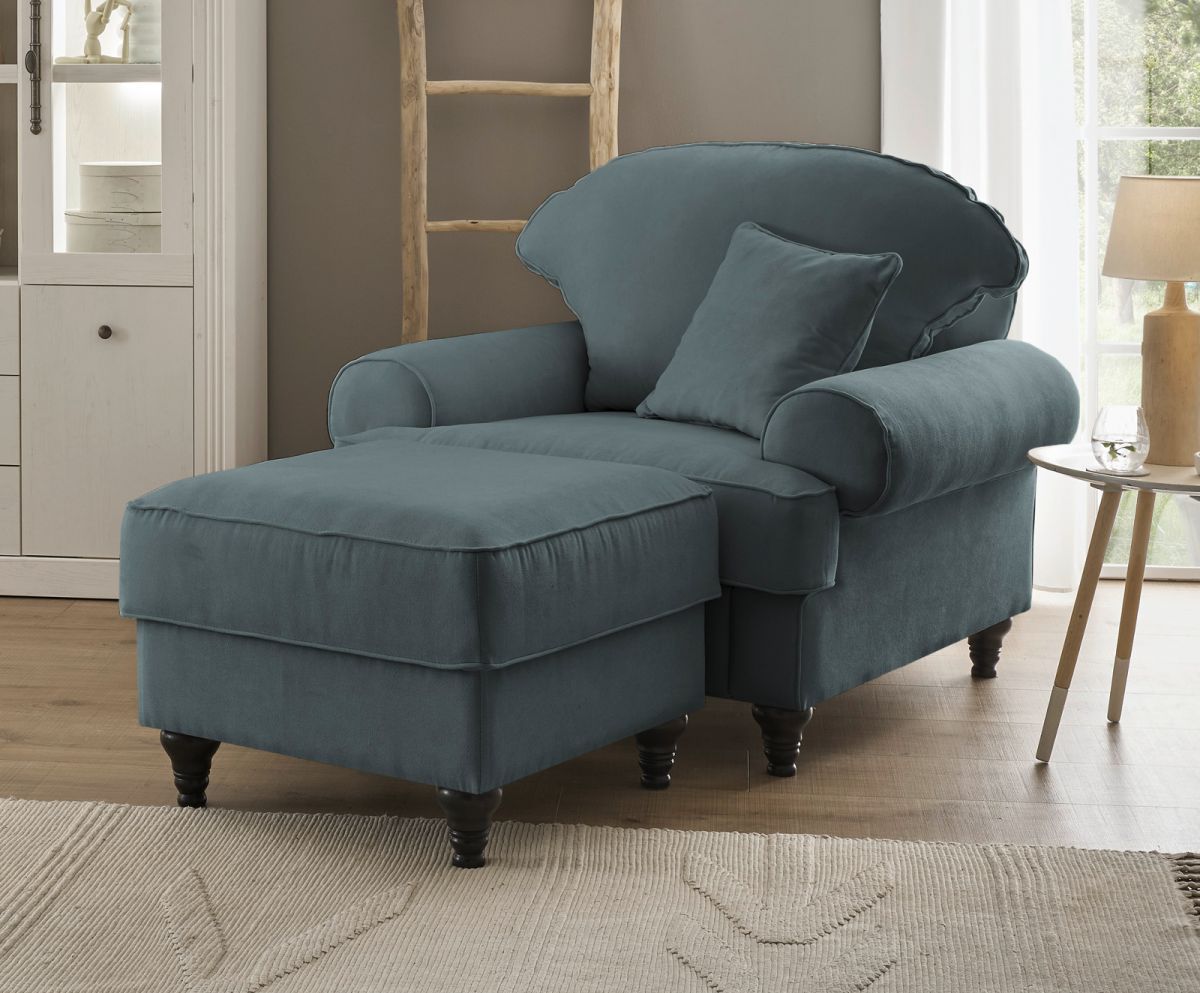 Loungesessel mit Hocker Sessel Set in grau Relax Ohrensessel Fernsehsessel Adelina