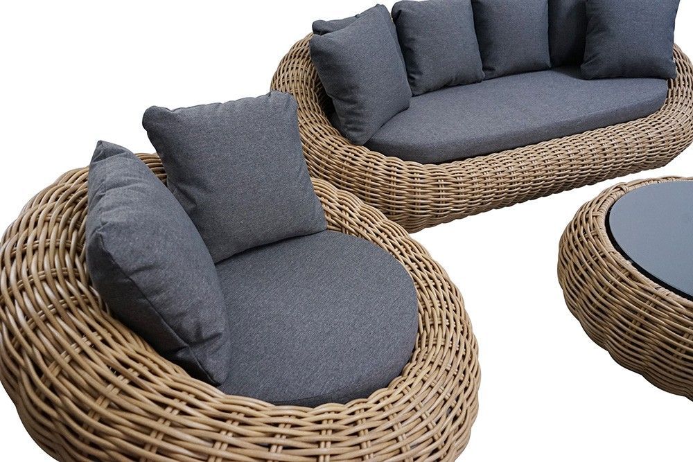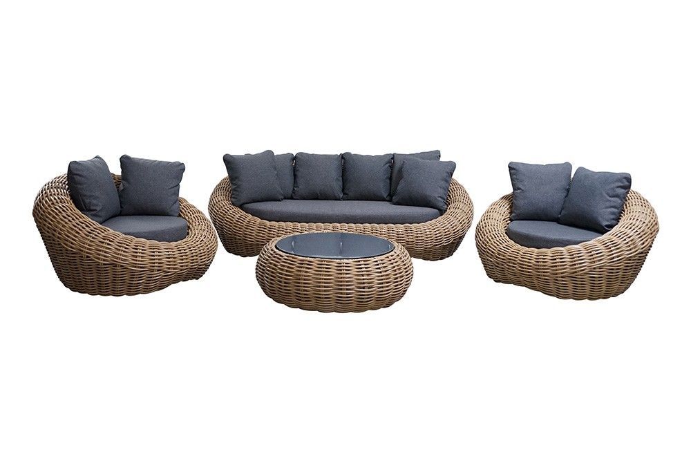 Loungeset Ronda Ronda ist die Loungegruppe für gemütliche Stunden in der Sonne. Das Loungeset Ronda besteht aus einem gemütlichen Sofa, zwei bequemen Sesseln und einem Tisch. Das Witterungsbeständige Polyrattengeflecht, in verbindung mit den Bezügen aus speziellem Outdoor-Stoff, lassen Sie lange Fre