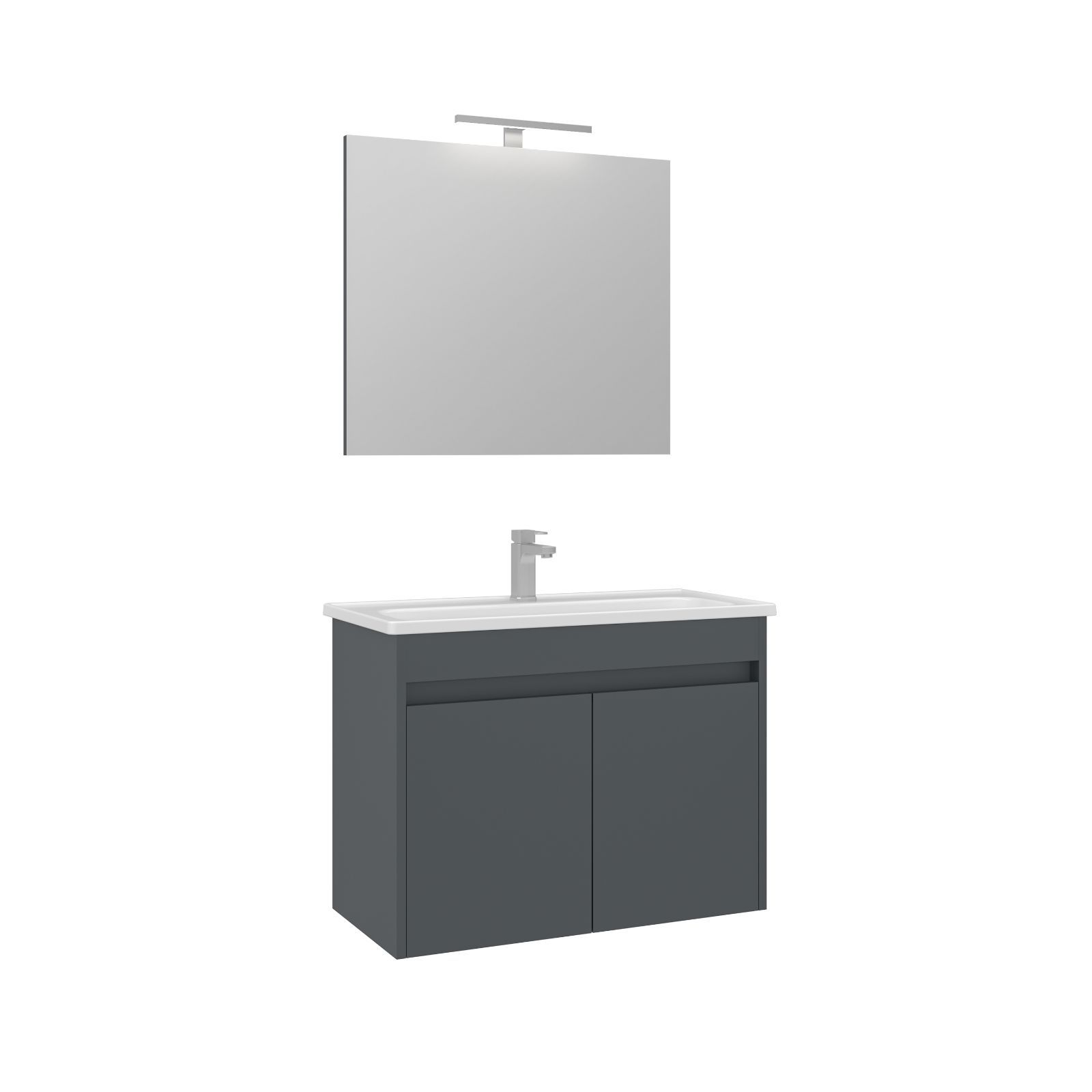 Lova Badmöbel 60 cm Unterschrank LED Spiegel Waschbecken Anthrazit