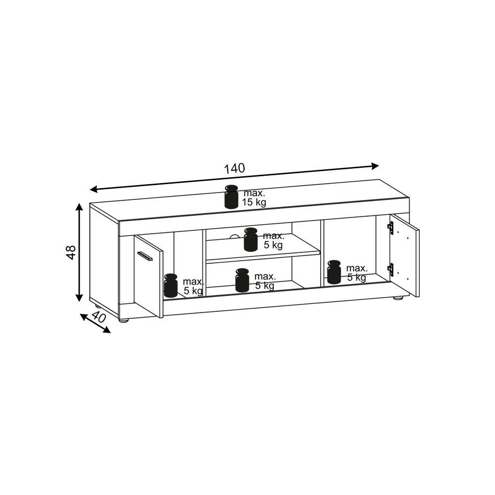 Lowboard 140 Fernsehkommode Fernsehtisch TV-Kommode Möbel Sonoma-Eiche / Weiß
