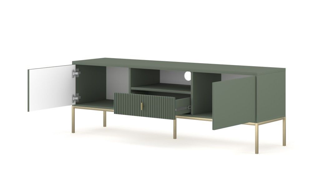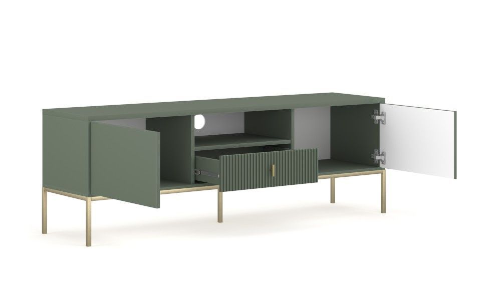 Lowboard 154 Fernsehkommode TV-Tisch TV-Kommode Sideboard Rauchgrün Gold