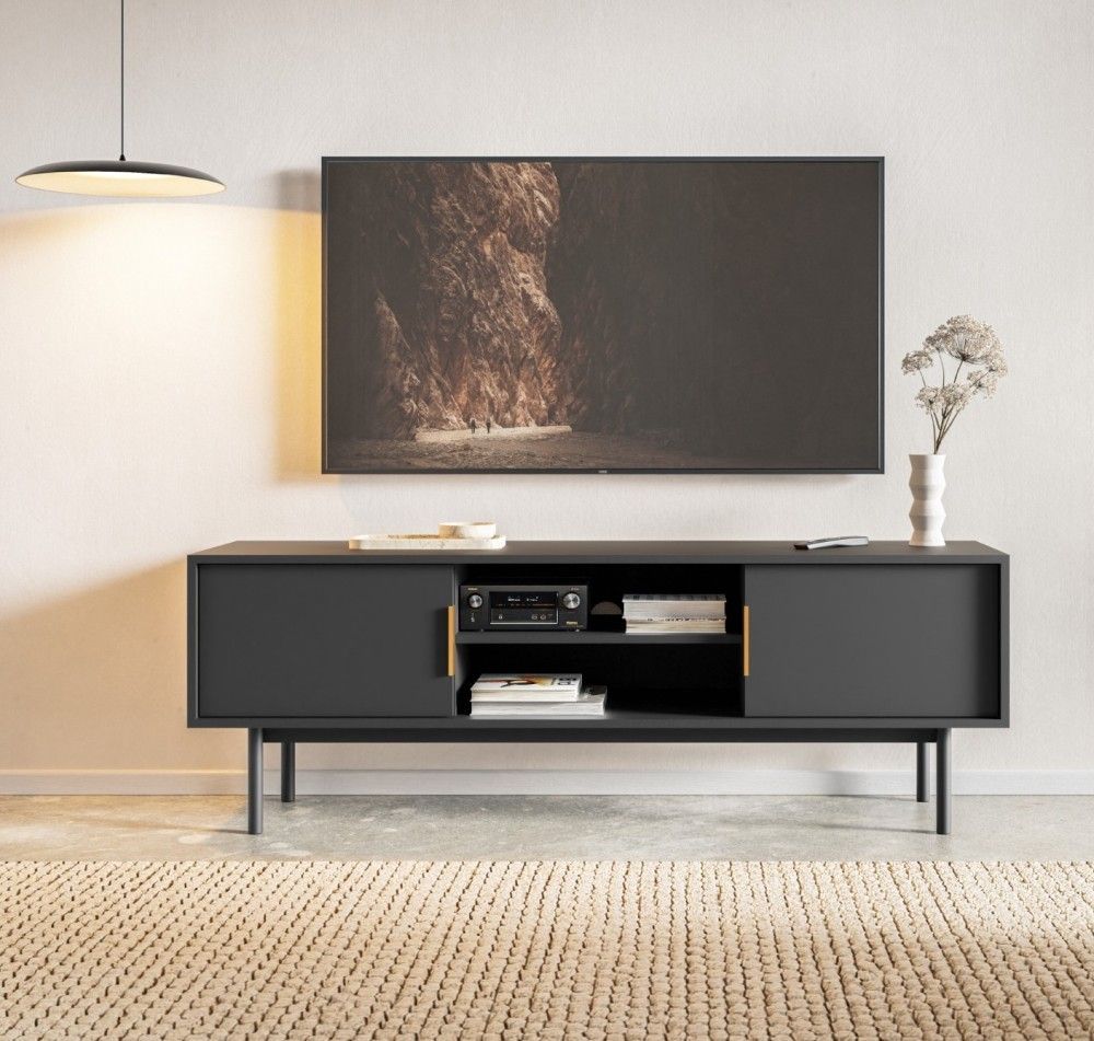 Lowboard 154 Fernsehkommode TV-Tisch TV-Kommode Sideboard Schwarz