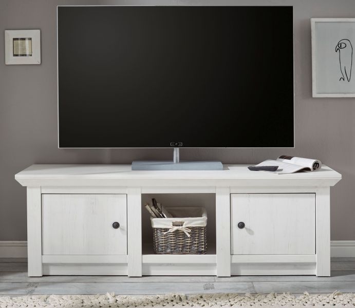 Lowboard in weiß Pinie TV Schrank Landhaus TV-Board Fernsehschrank Hooge 152 cm