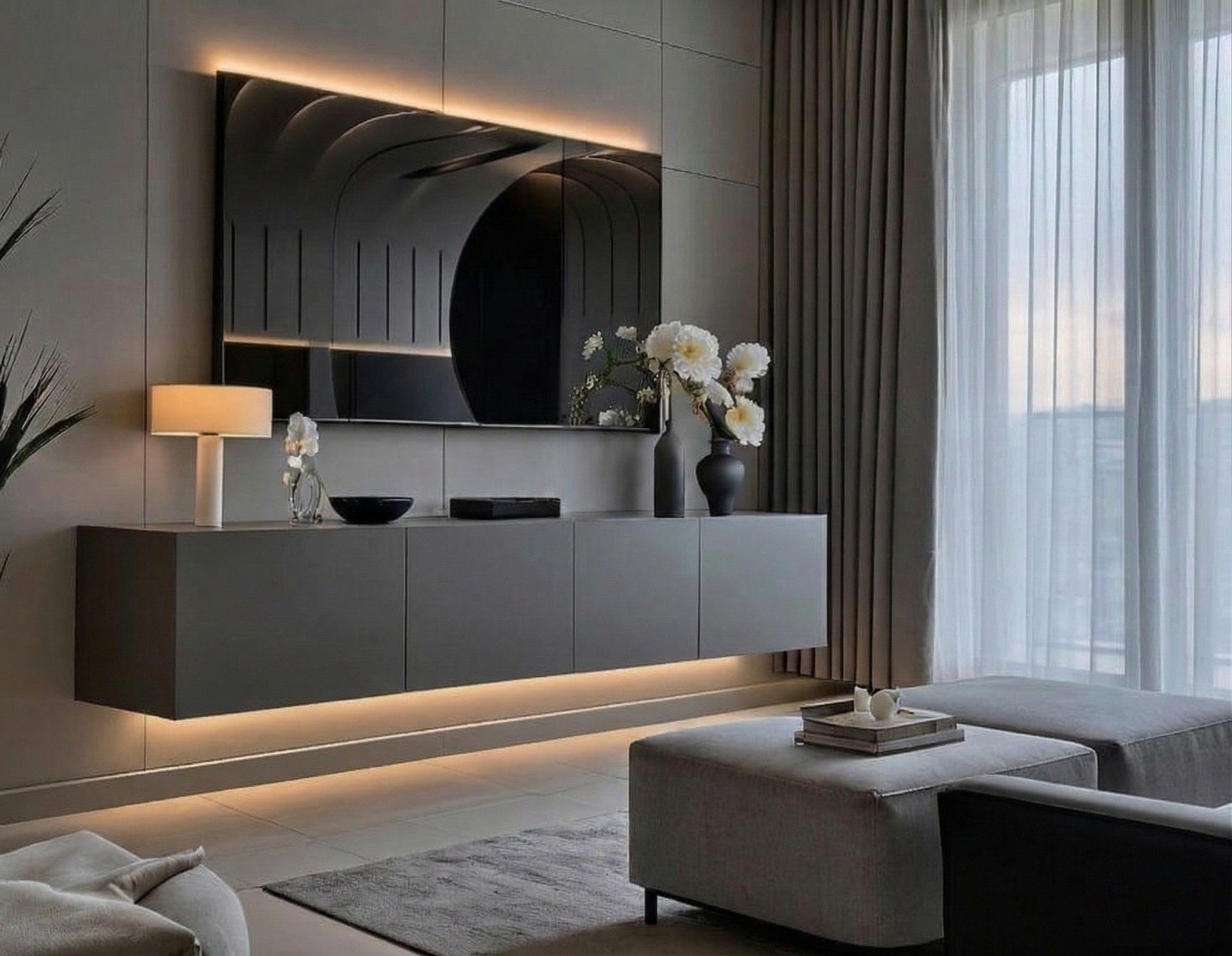 Lowboard PARIS 200 cm Dunkelgrau Matt - Soft Close TV-Schrank - LED optional