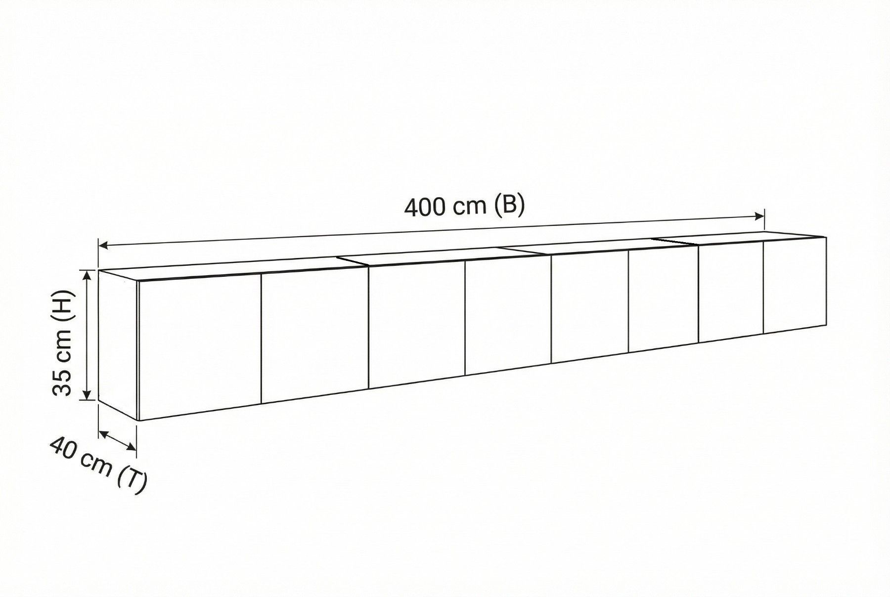 Lowboard PARIS 400 cm Weiß Hochglanz- Matt - Soft Close TV-Schrank- LED optional