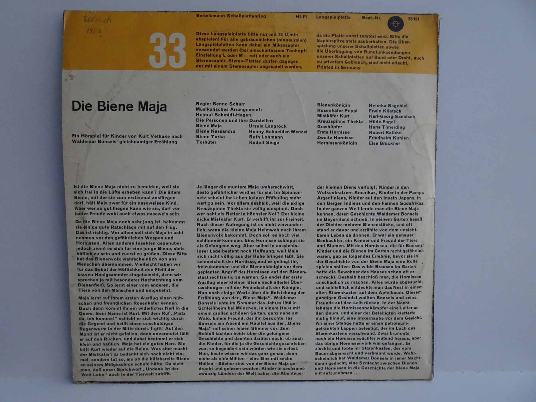 LP 25 cm 10" Bertelsmann 53151 Biene Maja Waldemar Bonsels Kurt Vethake