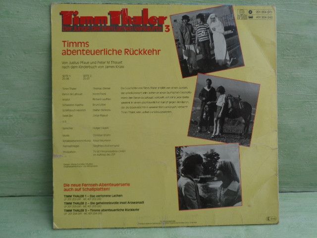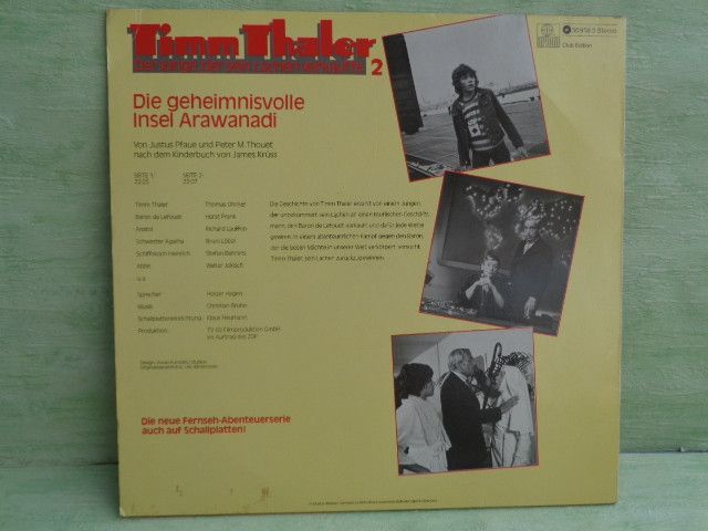 * * * Sammeln & Seltenes - Hörspiel Vinyl * * * * ... aus Freude an schönen Dingen ..... Vinyl - LP - Schallplatten Das verlorene Lachen : 201202-241 304915 : HK1639 - 1642 Die geheimnisvolle Insel Arawanadi : 309583 : HK1643 - 1645 Timms abenteuerliche Rückkehr : 309591 : HK1646 - HK1649 von Ju