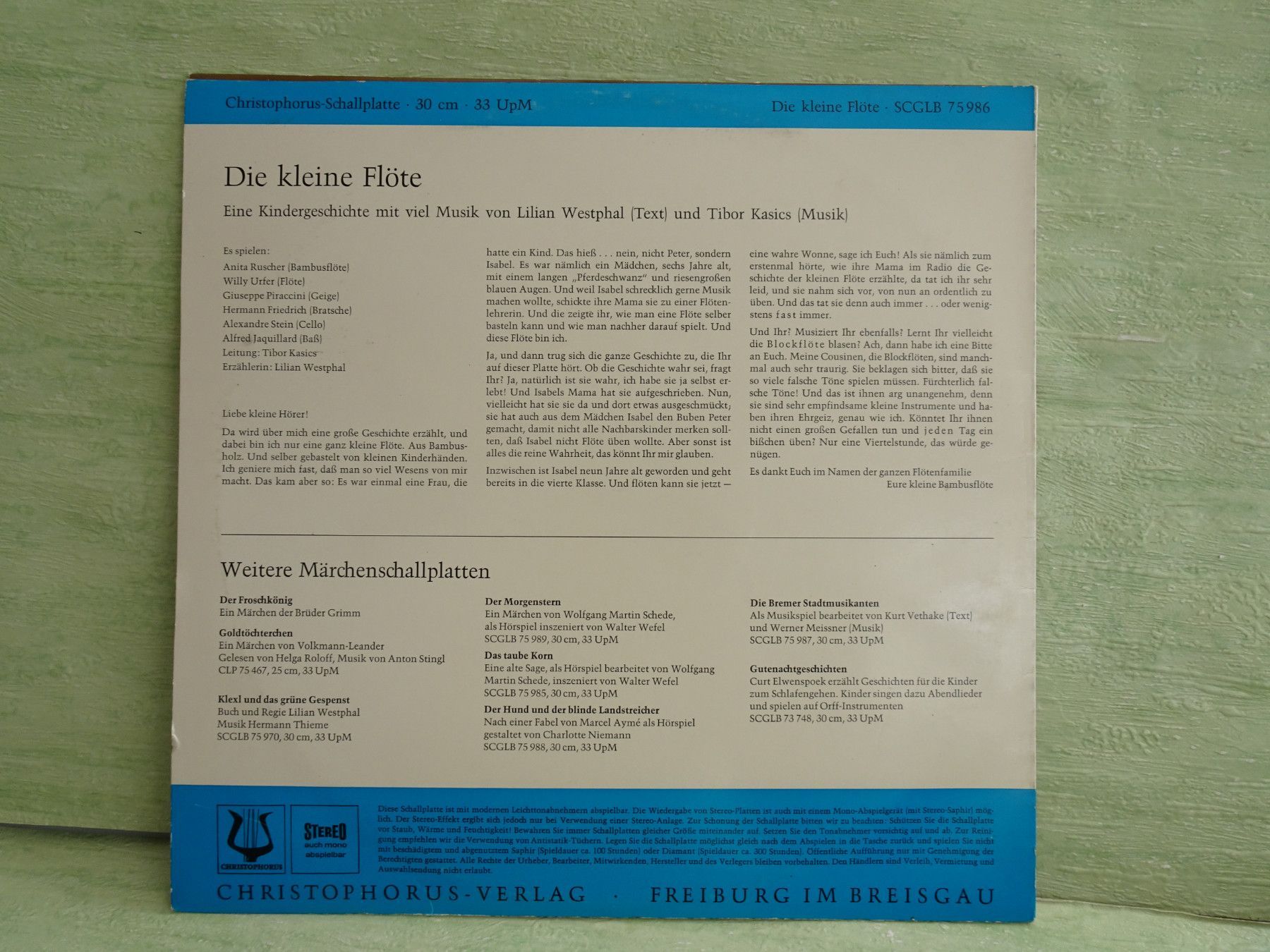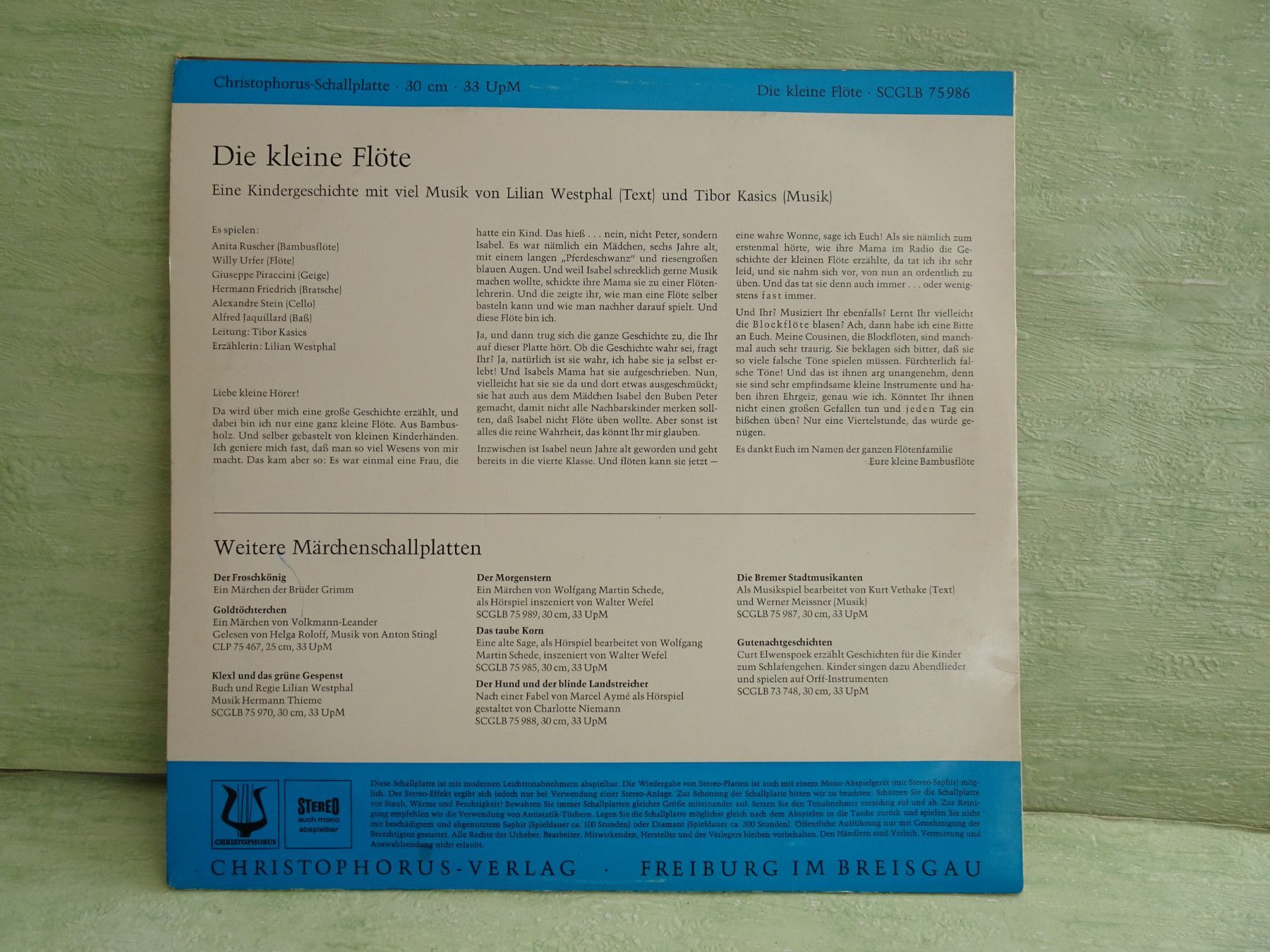 LP Christophorus SCGLB75986 Die kleine Flöte Lilian Westphal Tibor Kasics