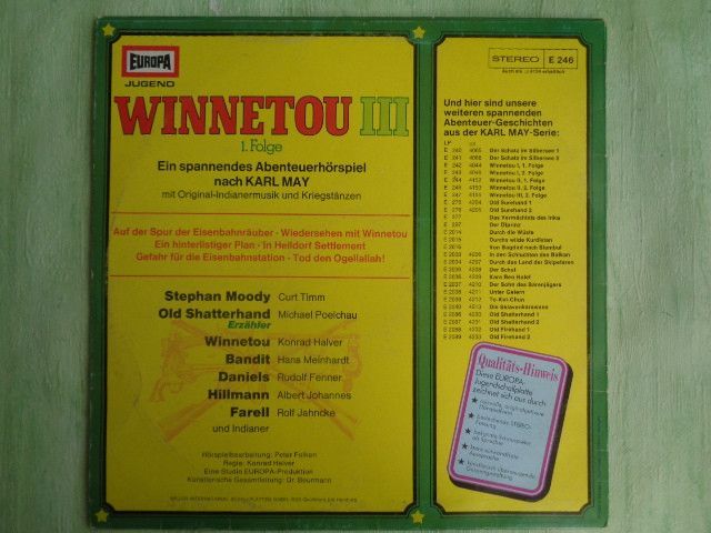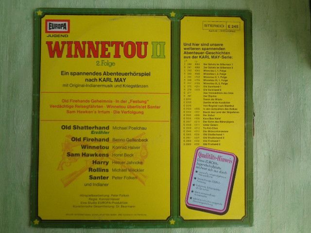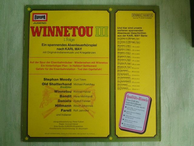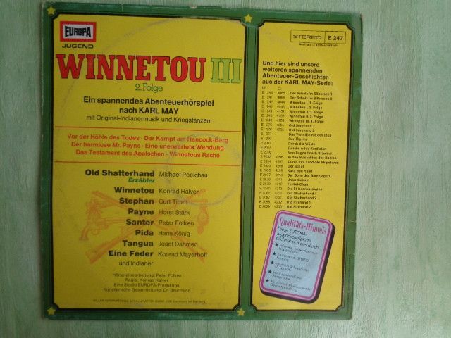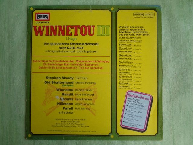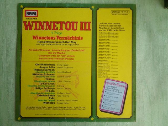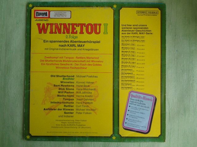 LP Europa 115503.2 ua Winnetou 1-3 Karl May Michael Poelchau Peter Folken Hörspiel