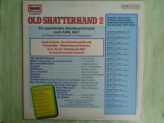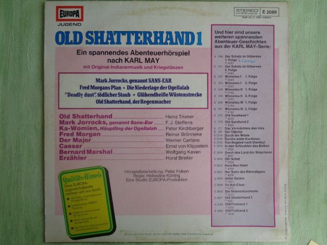 LP Europa 2086 2087 Old Shatterhand Karl May Heinz Trixner Peter Folken Hörspiel