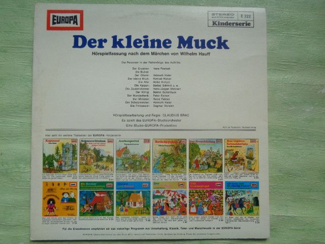 LP Europa 222 Der kleine Muck Wilhelm Hauff Hans Paetsch Claudius Brac Hörspiel Vinyl