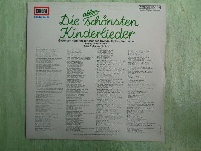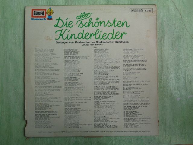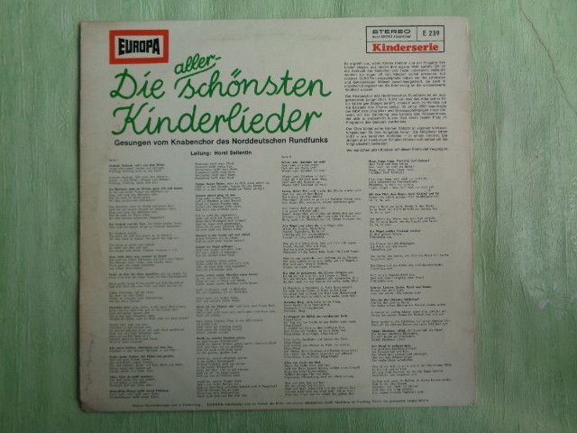 LP Europa Die allerschönsten Kinderlieder Knabenchor NDR Horst Sellentin Volksweisen