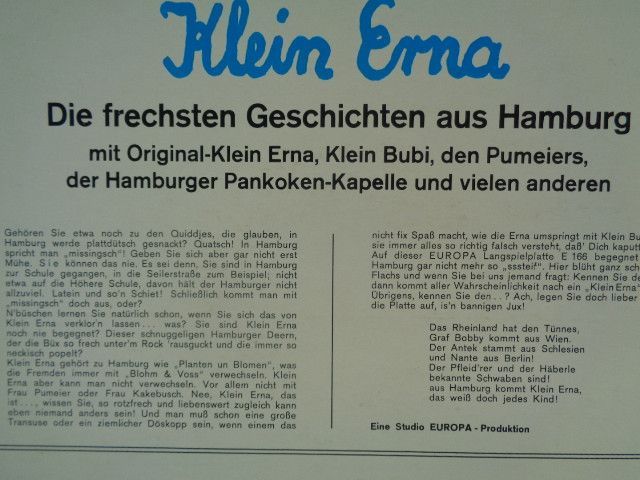 LP Europa E166 Klein Erna Geschichten aus Hamburg Pumeiers Pankoken Kapelle