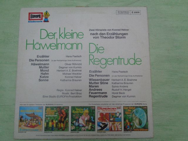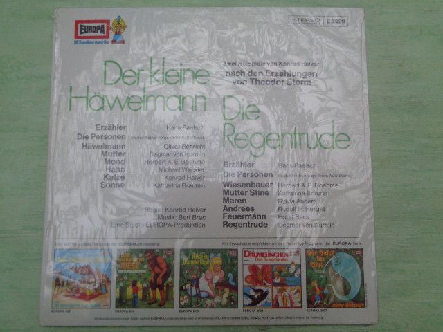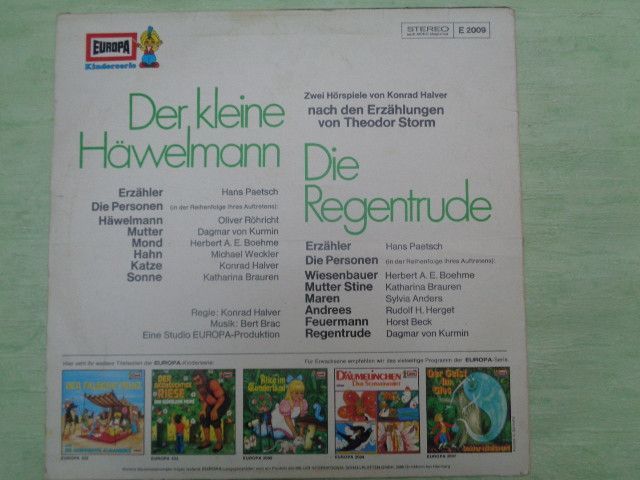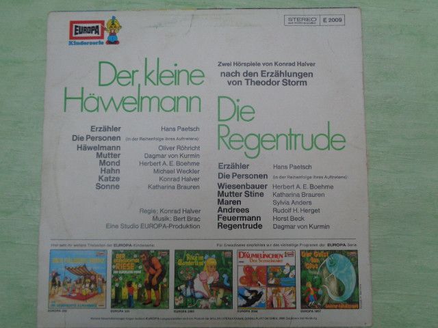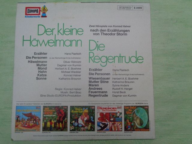 LP Europa E2009 Der kleine Häwelmann Regentrude Theodor Storm Konrad Halver Hörspiel