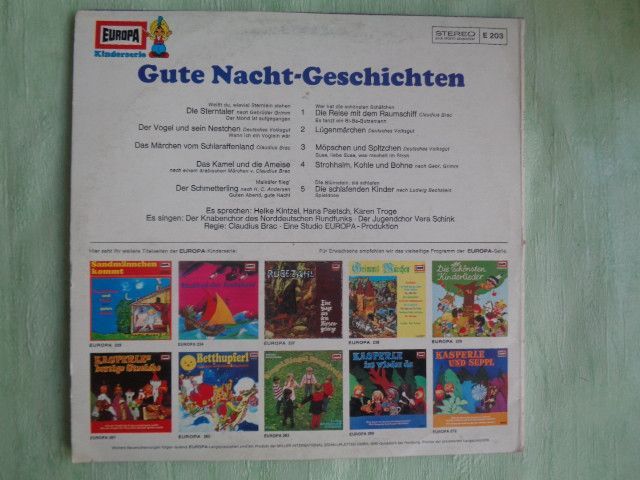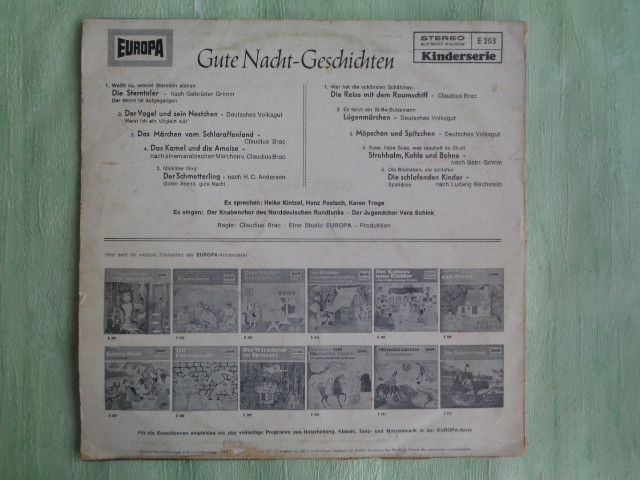 LP Europa E203 Gute Nacht Geschichten Claudius Brac NDR Chor Vera Schink