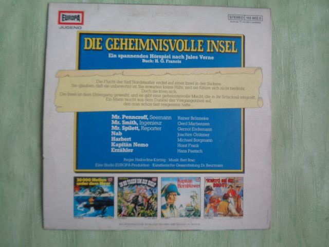 LP Europa Jules Verne Reise zum Mittelpunkt geheimnisvolle Insel 20000 Meilen