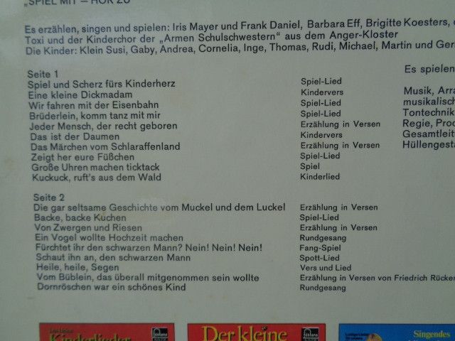 * * * Sammeln & Seltenes - Hörspiel Vinyl * * * * ... aus Freude an schönen Dingen ..... Vinyl - LP - Schallplatten Iris Mayer , Frank Daniel , Barbara Eff uva Kinderchor der Armen Schulschwestern aus dem Anger-Kloster optische Bewertung offene Cover, die aber ohne Aufwand geklebt werden können,