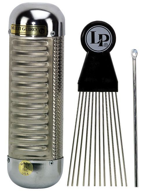 Latin Percussion LP 452 Multi Guiro Metallkorpus mit Stahlkugel-Shakerfüllung zwei Spielflächen (fein grob) mit Scraper