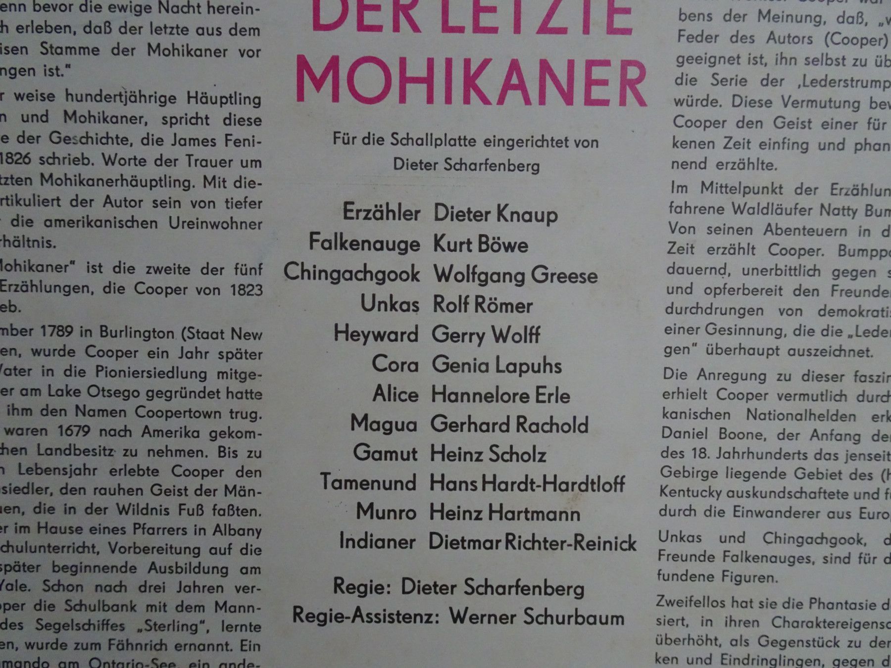 LP Litera 860139 James Fenimore Cooper Der letzte Mohikaner Scharfenberg Dieter