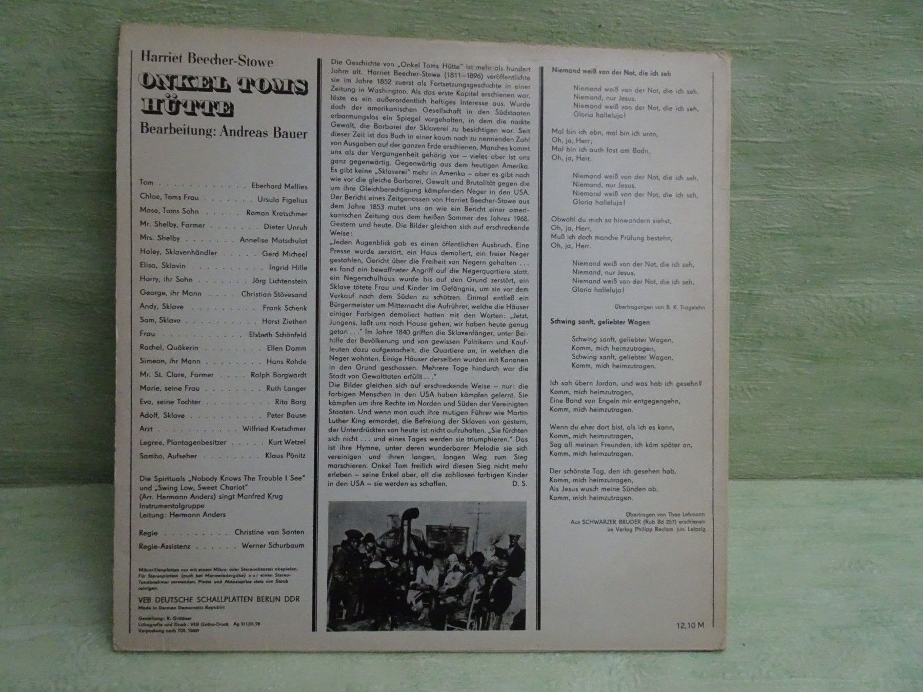 LP Litera 865156 Onkel Toms Hütte Harriet Beecher Stowe Andreas Bauer