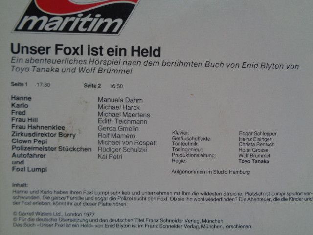 LP Maritim 47500NW Enid Blyton Unser Foxl ist ein Held Tanaka Brümmel Vinyl 1977