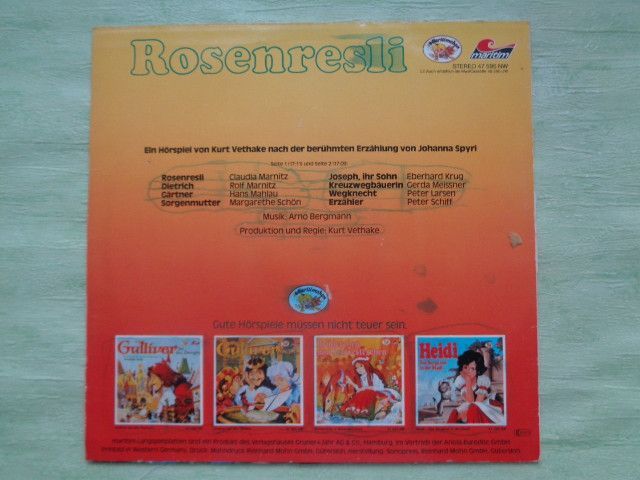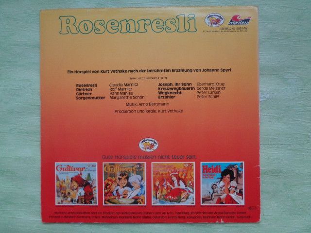 LP Maritim Heidi Rosenresli Kurt Vethake Johanna Spyri Hörspiel Vinyl