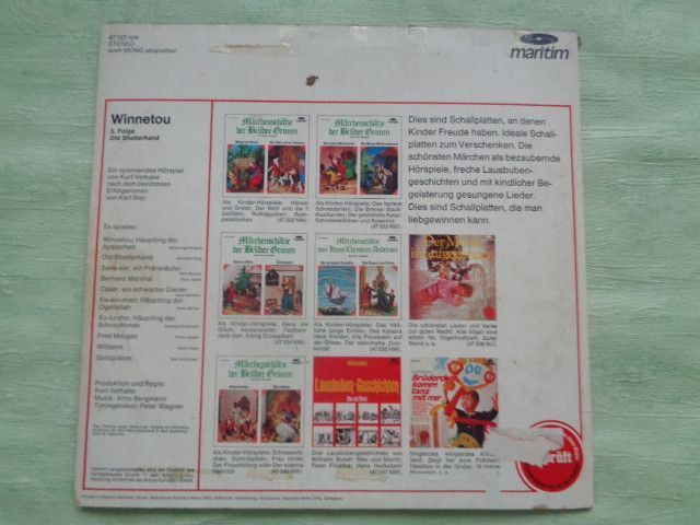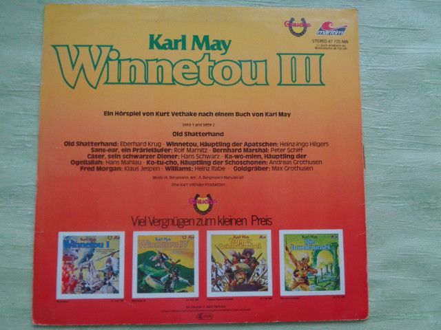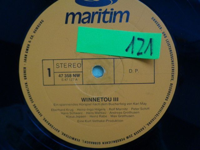 * * * Sammeln & Seltenes - Reklame & Werbung * * * * ... aus Freude an schönen Dingen ..... Vinyl - LP - Schallplatten 116: 47075NW Winnetou 1 LP: ohne Cover: gut- 117: Winnetou 1 47075NW LP: gut++ gut Cover: gut 118: Winnetou 1 47075NW LP: gut++ Cover: gut+ 119: Halbbluts Ende - Old Firehan