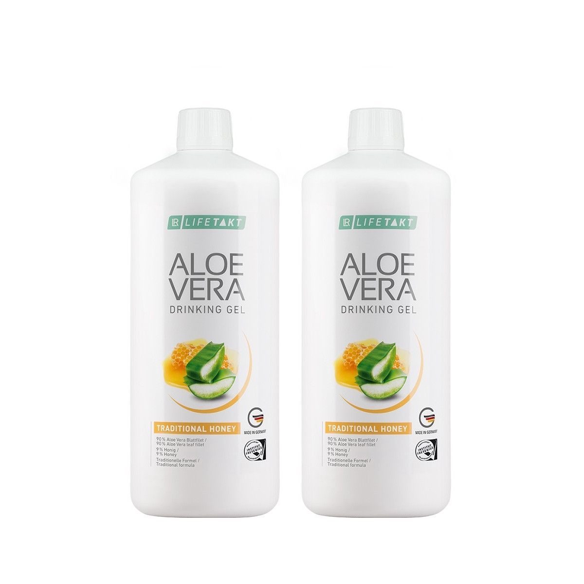 LR Aloe Vera Drinking Gel Traditionell mit Honig 2er Set Artikelnummer: 80702-681 2000.00 ml Flüssiges Nahrungsergänzungsmittel mit Vitamin C und Honig Die 3 Grundbausteine für deine Gesundheit: versorgt, schützt und unterstützt den Energiestoffwechsel1-4 90 % reines Aloe Vera Blattfilet und mit 9 % wertvollem Honig Eine Tagesration deckt 75 % der empfohlenen täglichen Dosis an Vitamin C