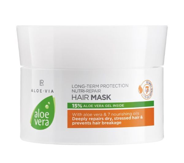 Für gesundes, glänzendes Haar bis in die Spitzen Mit 15 % Aloe Vera-Gel und Nutri-Oil-Repair-Complex aus 7 Ölen Nährt und repariert das Haar in der Tiefe und füllt poröse Stellen Gibt dem Haar Stabilität zurück und schützt so langfristig vor Haarbruch Anwendung 1-2 Mal pro Woche statt der Spülung Produkt aus der LR ALOE VIA Nutri-Repair Haarpflege-Serie