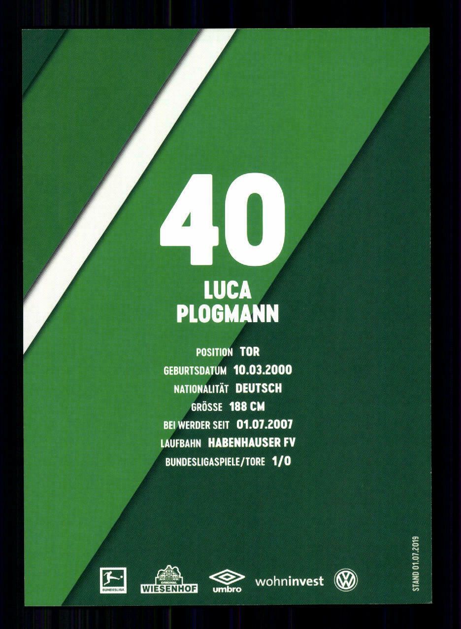 Luca Plogmann Autogrammkarte Werder Bremen 2019-20 Original Signiert