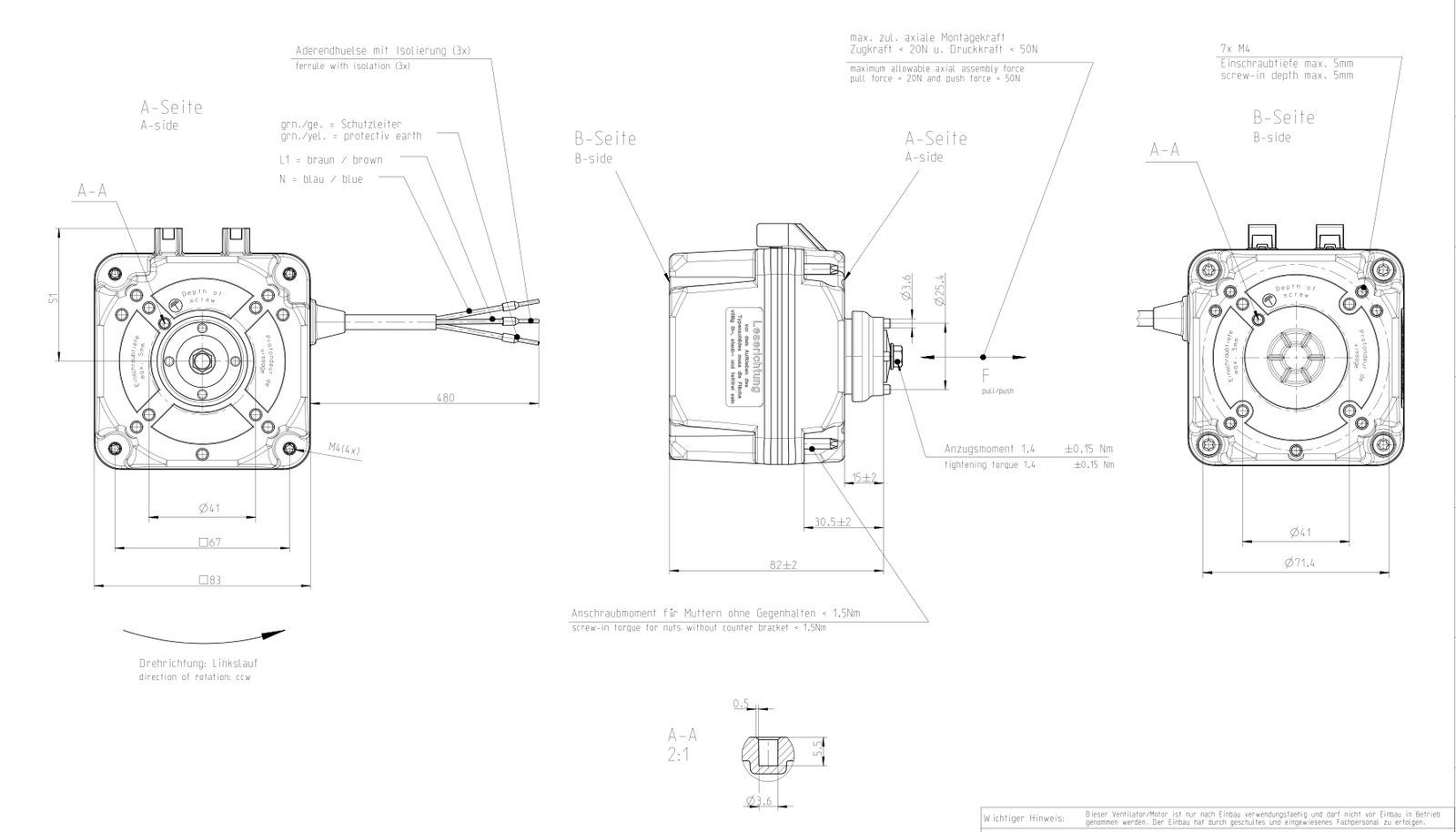 Lüftermotor / LOW-ENERGY MOTOR EBM IQ 3612 / 115V / 60HZ