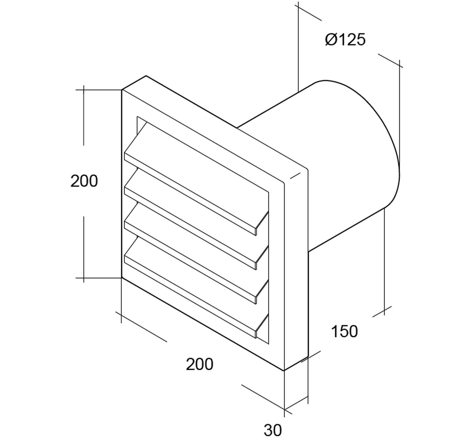 • Mauerkasten Ø 125mm, Lüftungsgitter, Aussengitter mit Rückstauklappe