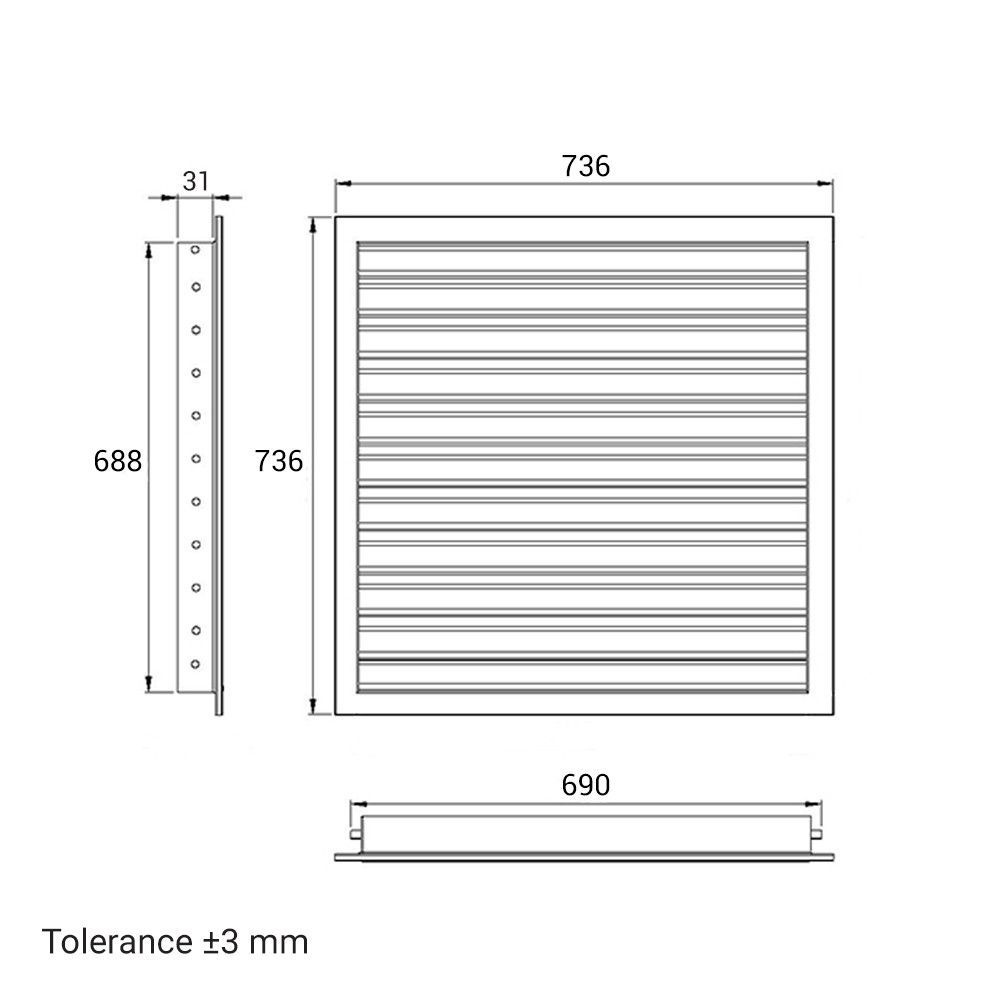 Lüftungsgitter 700 x 700 mm weiß Strangprofil, Dichtung, Edelstahlschrauben, Dübel