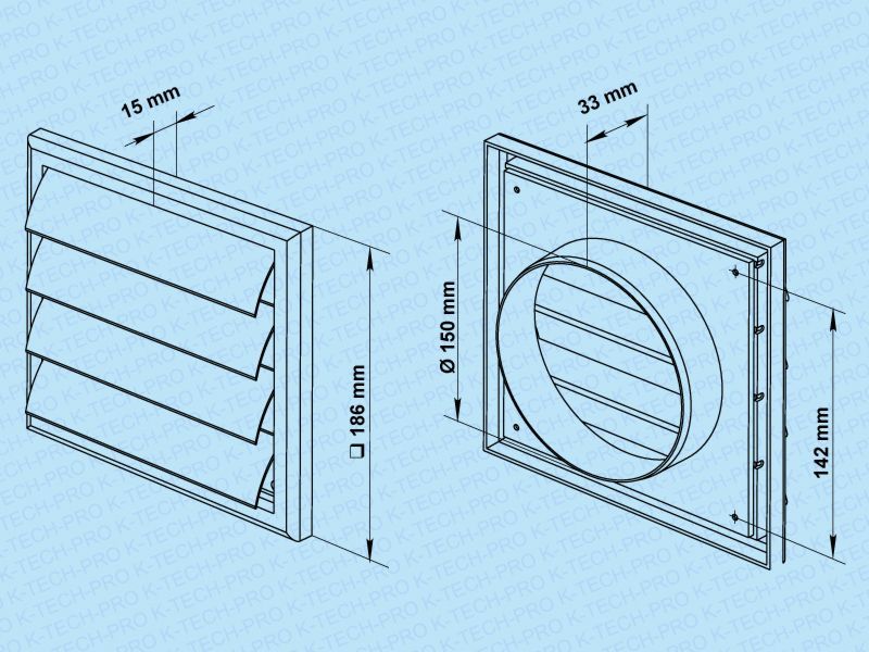Lüftungsgitter MVJ mit Flansch mit beweglichen Lamellen