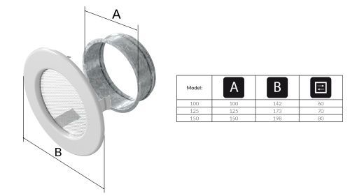 Lüftungsgitter Warmluftgitter Kaltluftgitter Runden Durchmesser 150 mm in 7 Farb