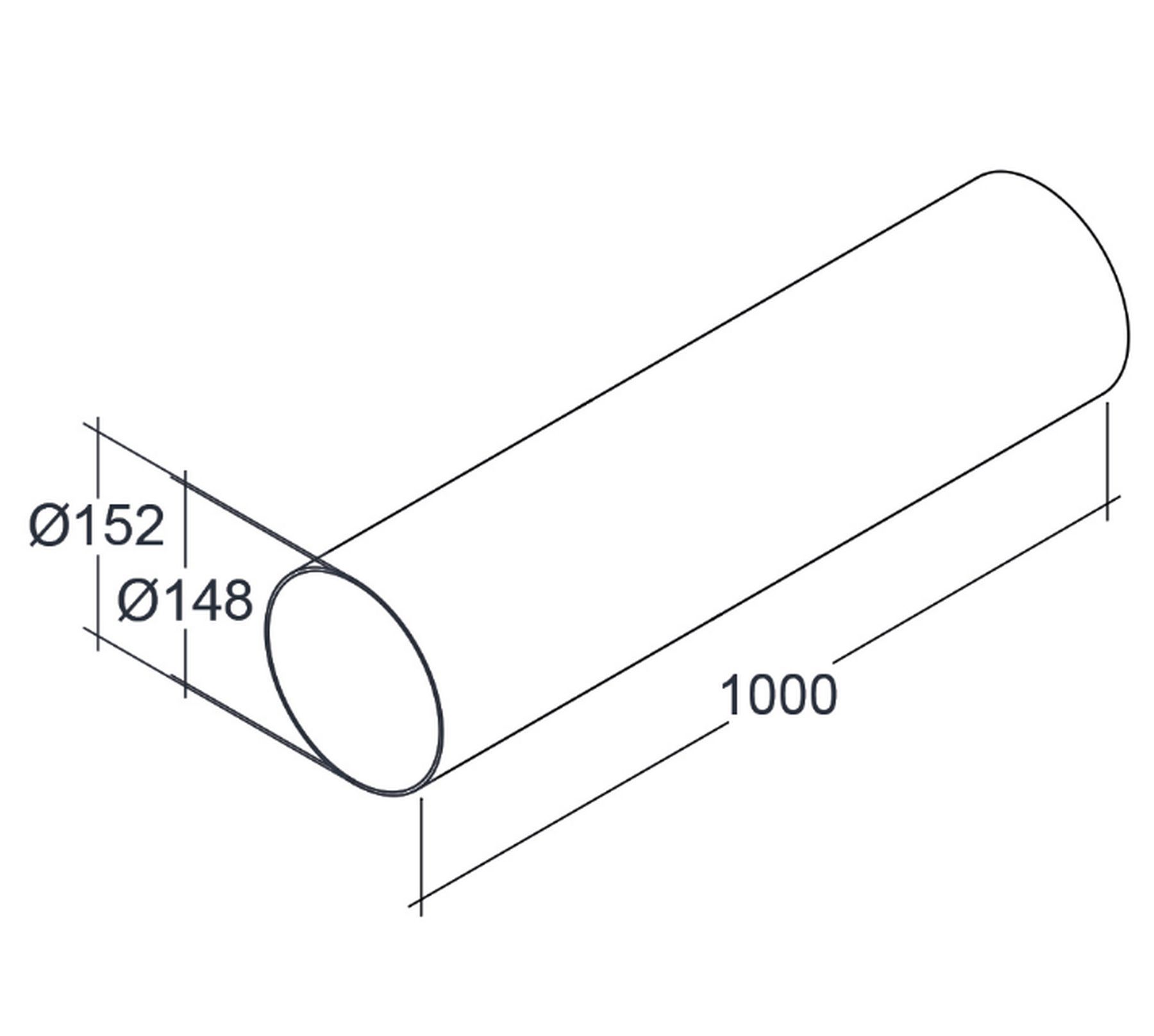 • Lüftungsrohr Ø 150mm, Abluftrohr 100cm ohne Muffe, Rundrohr Abluft