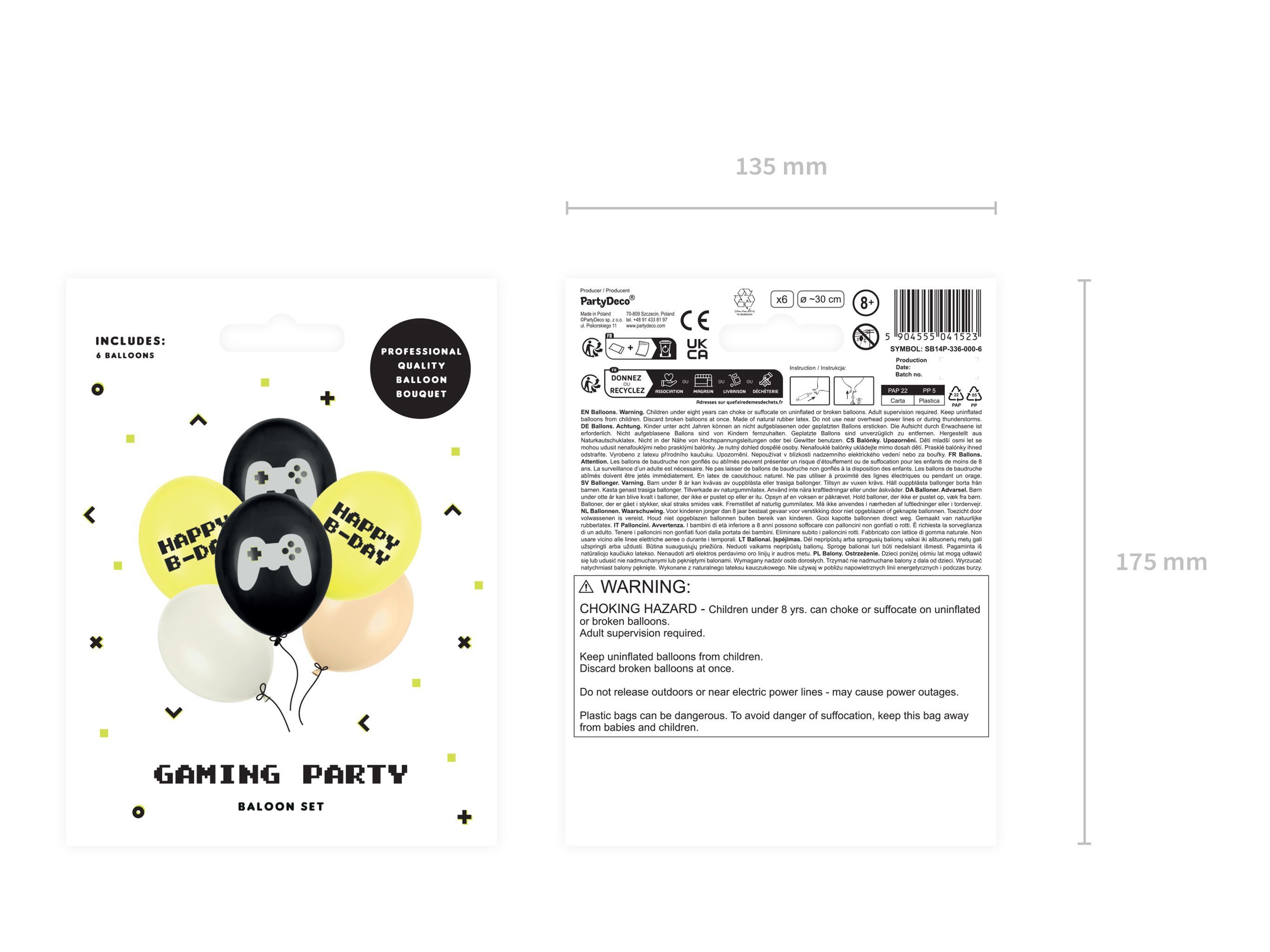 Luftballons Happy Birthday Gamer 30cm Schwarz / Gelb 6er Set