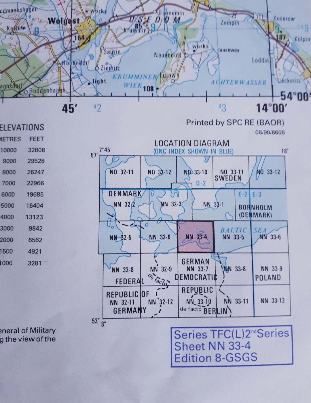 Luftfahrtkarte Transit Flying Chart Low Level 2nd Series 1:250,000 * Rostock,DDR,Dänemark * Zustand: gut - gebraucht mit kleinen Gebrauchsspuren