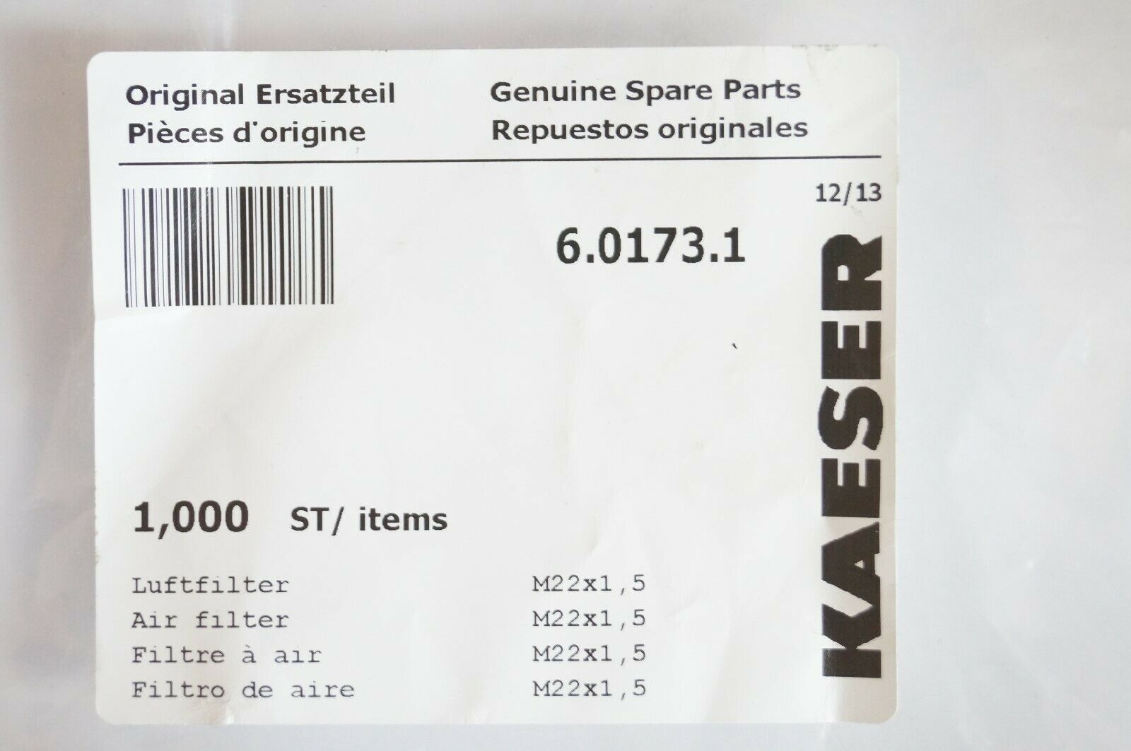Luftfilter 6.0173.1 für Kaeser Kompressor Kolbenkompressor M22x1,5