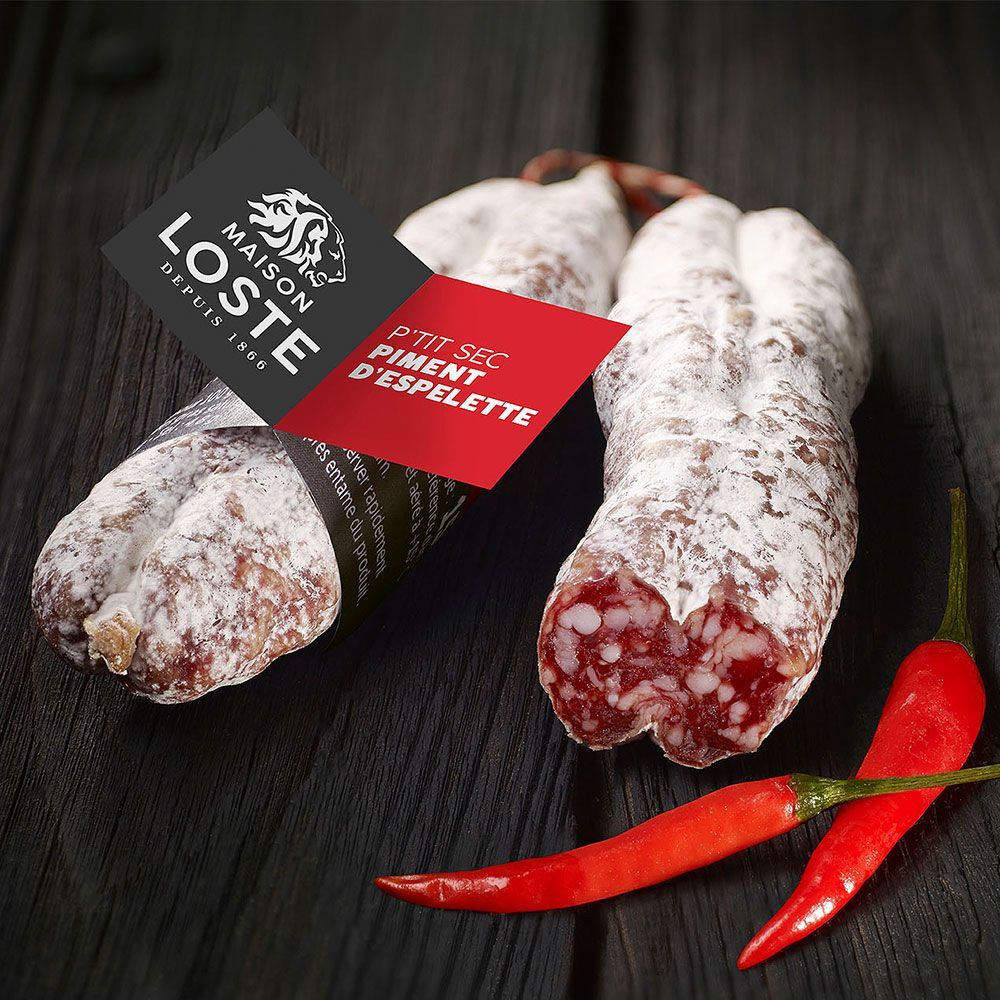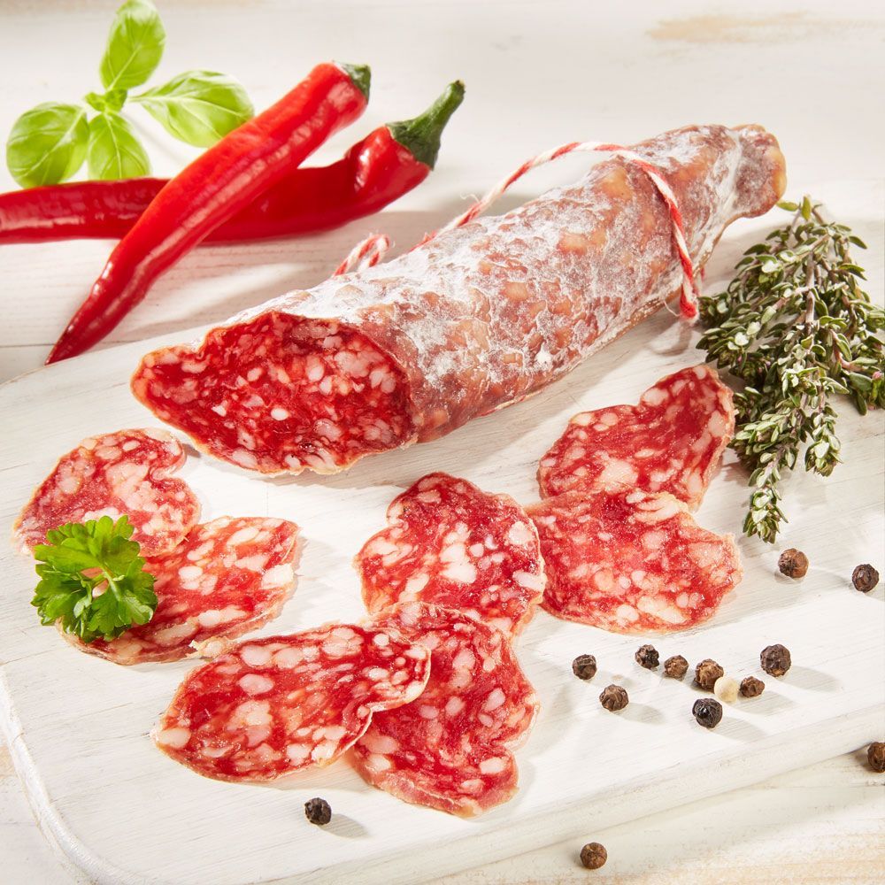 Luftgetrocknete französische Salami mit Piment d'Espelette, im Stück