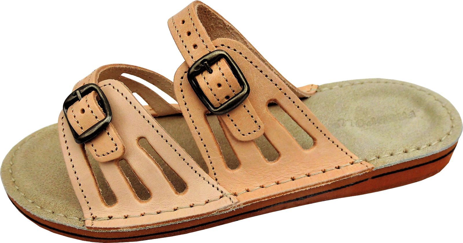 Luftige Leichte Pantolette - Hausschuhe - Gr.37 Echt Leder * Natur* (23.5.7-29)