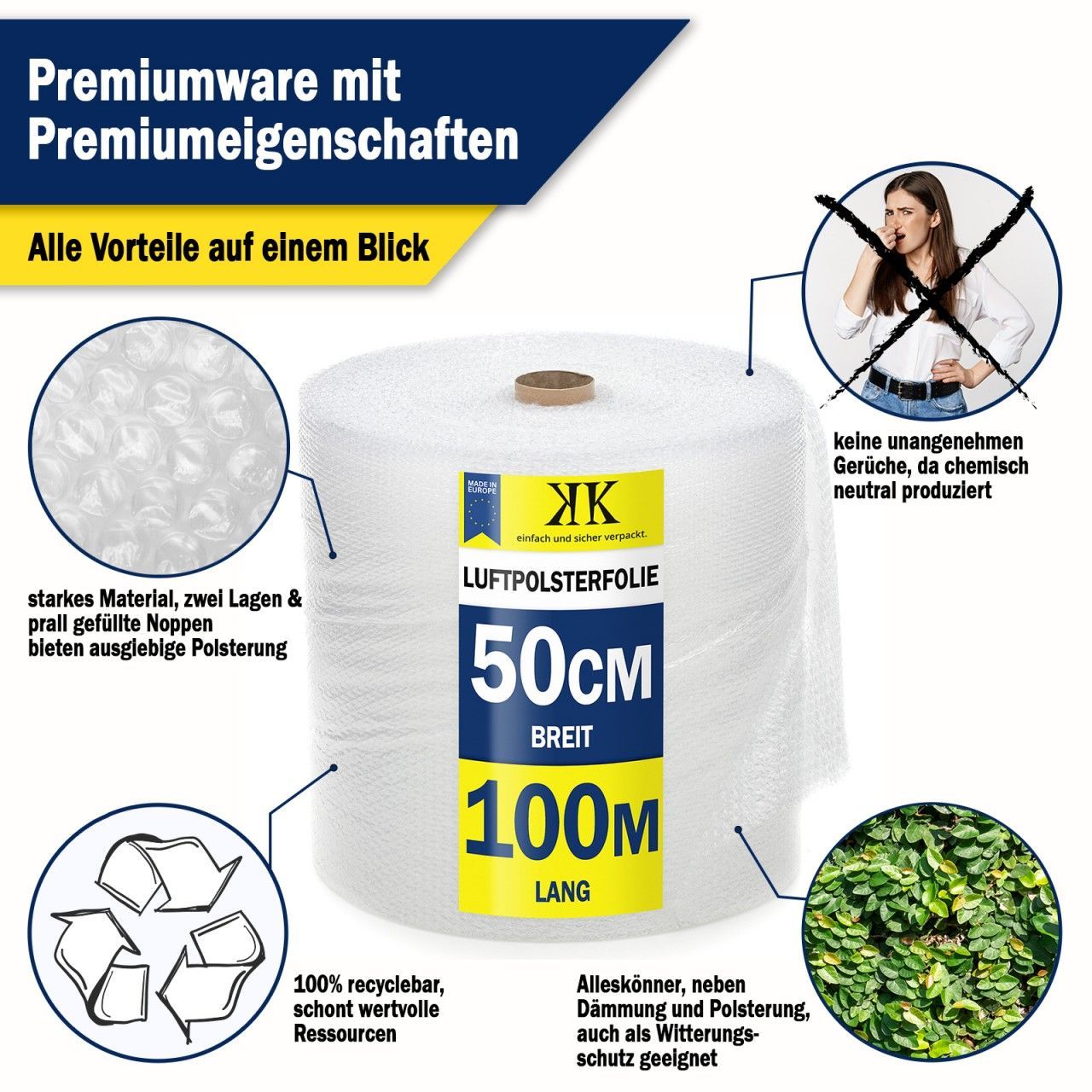 Luftpolsterfolie 0,5x100m FREI HAUS 50m² Noppen-Folie 60 my Kostenloser Versand
