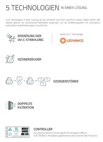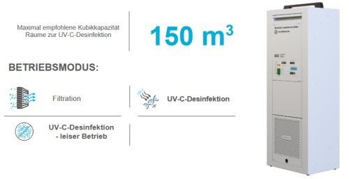 Luftreiniger 150m³ 300m³/ h 180W 230V UV-C Technik Luftfilter Luftdesinfektion