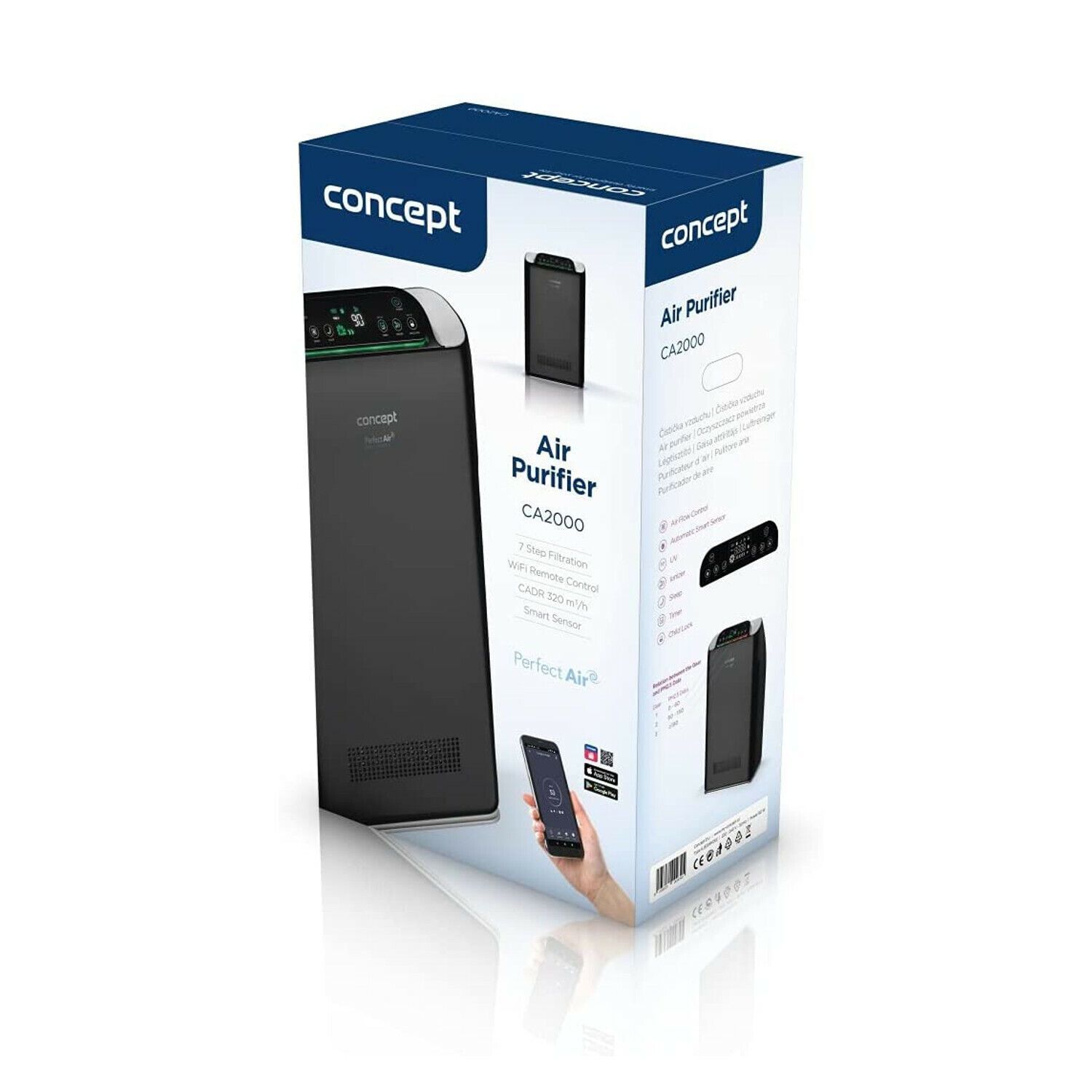 Luftreiniger Raumluftreiniger Kohlefilter Mobile App HEPA-13 Staubfilter 7Stufen