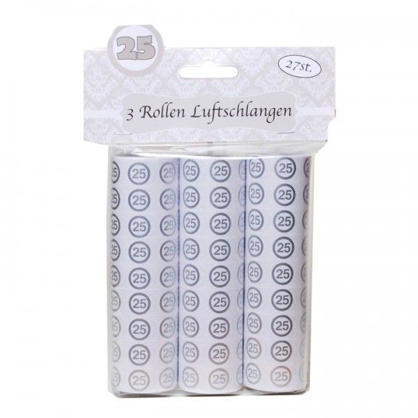 Luftschlangen "25", gold, 3-tlg. fuer Silberhochzeit, Jubilaeum oder auch fuer 25. Geburtstag