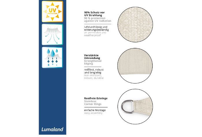 Lumaland Sonnensegel 4x5m Creme HDPE Mit Stabilisator Für UV-Schutz Rechteck